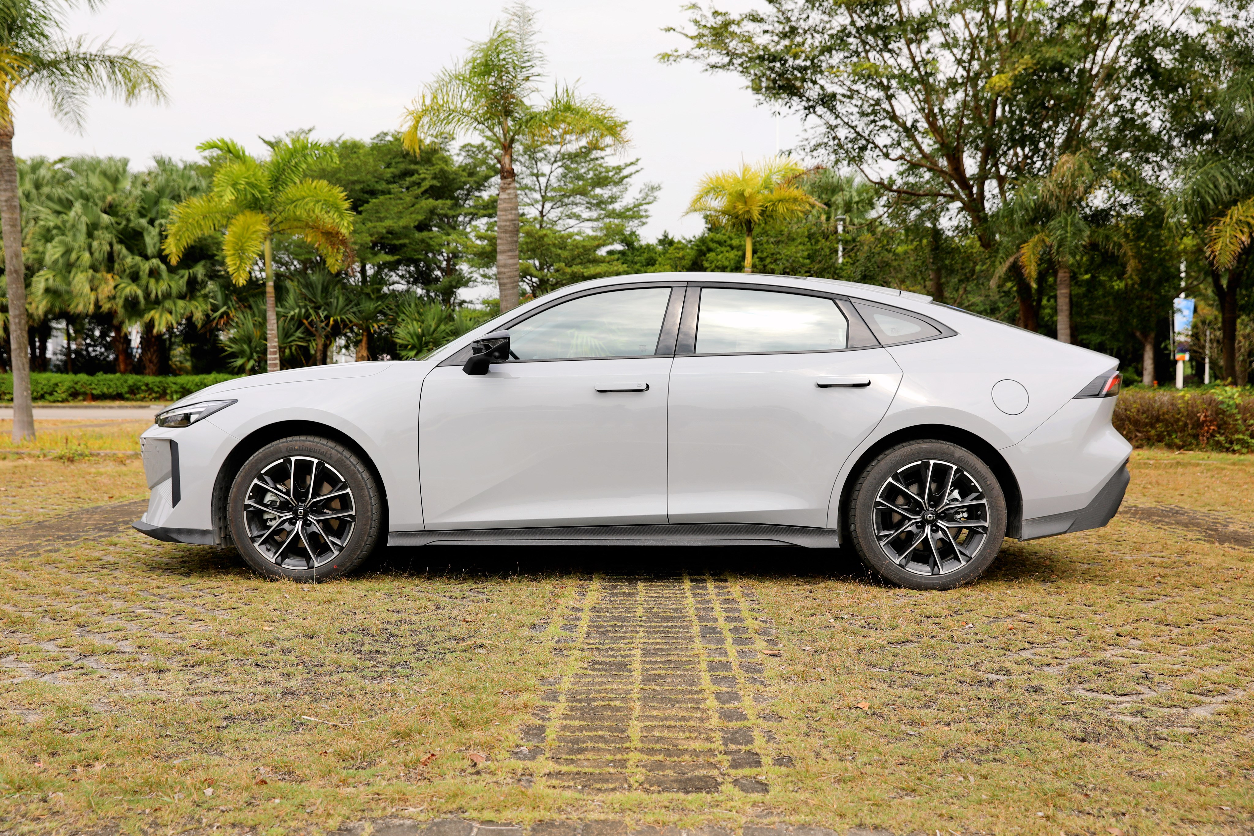 啟源A06的側(cè)面造型展現(xiàn)出優(yōu)雅的溜背設(shè)計,新車輪高比0.47,輪高幾乎占到車高的一半,低趴的車身姿態(tài)彰顯運動轎跑該有的氣質(zhì),此外,新車還配有隱藏式門把手與18英寸多輻式輪圈造型。尺寸上,啟源A06長寬高分別是4720/1838/1435毫米,軸距達到2750毫米。此外,啟源A06還配備馬牌MC6 高性能運動輪胎,增添車輛行駛中的抓地性。